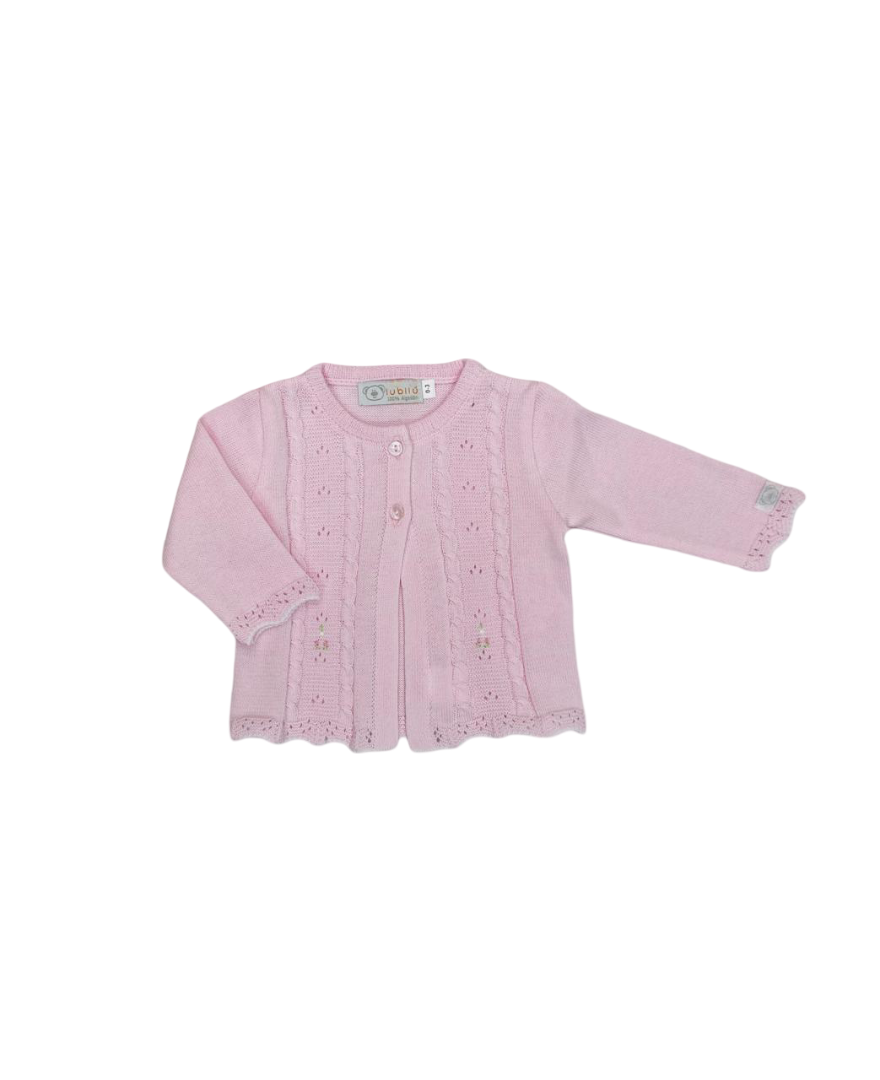 Saco de la marca Bebita confeccionado en algodón 100%, diseñado para bebé niña. Su tono rosado pastel resalta la delicadeza infantil, el hilo-algodón de alta calidad garantiza una textura suave y gentil, proporcionando el cuidado especializado que requiere la piel frágil del recién nacida.