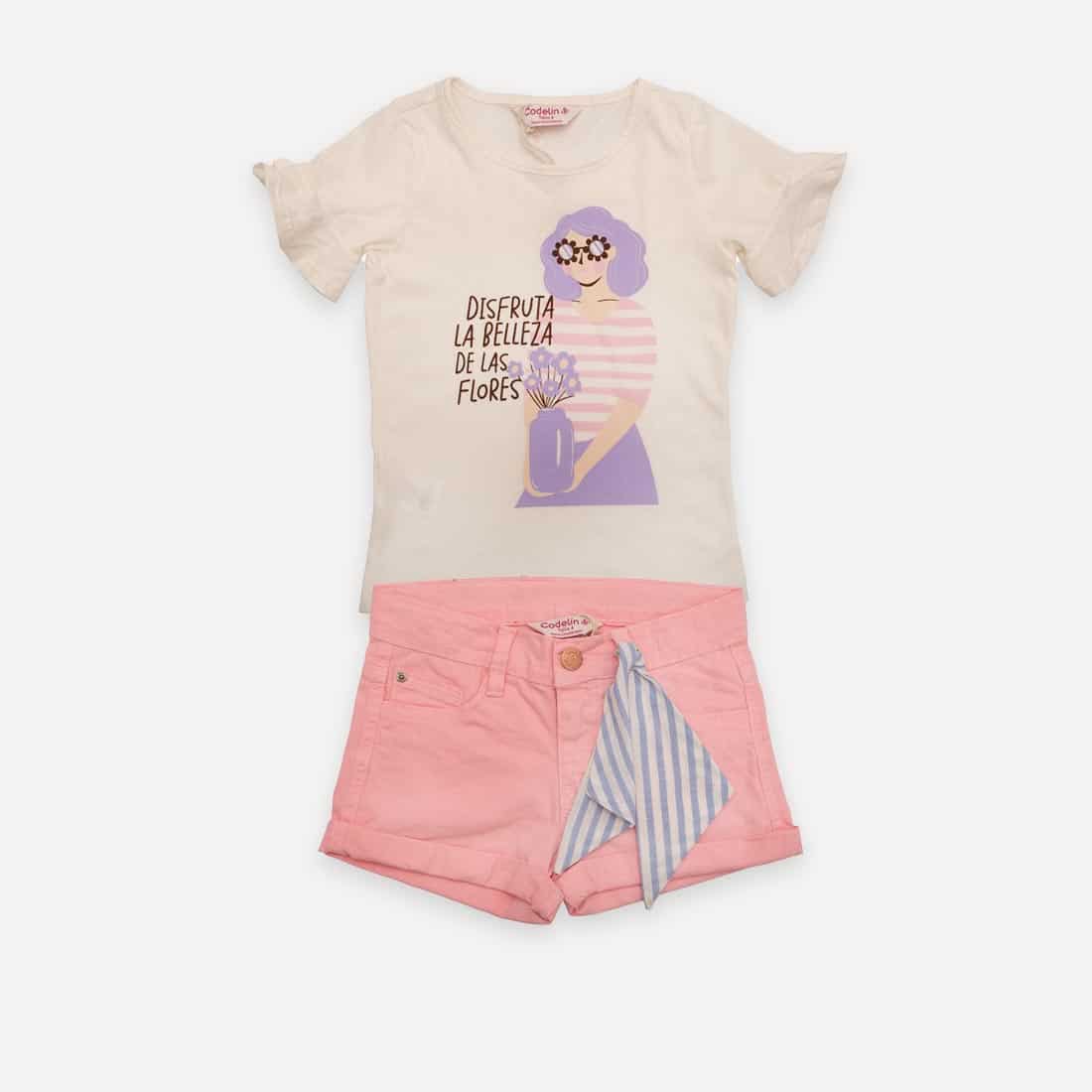Conjunto Bermuda Niña, Marca: Codelin, Color: Beige/Rosado
