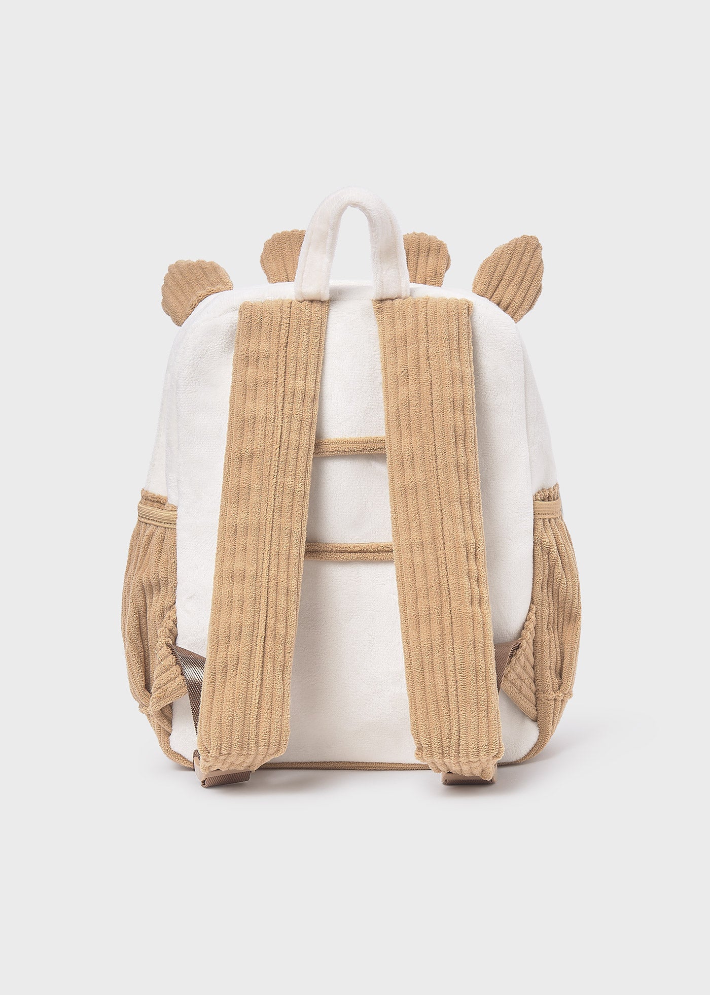 Mochila con diseño de jirafa de la marca Mayoral, en colores variados. Está fabricada con 100% poliéster en el exterior y forrada también en 100% poliéster.