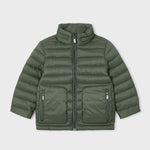 Chaqueta para niño de la marca Mayoral en color verde, confeccionada con exterior y forro 100% poliamida y relleno 100% poliéster para brindar comodidad y protección.
