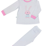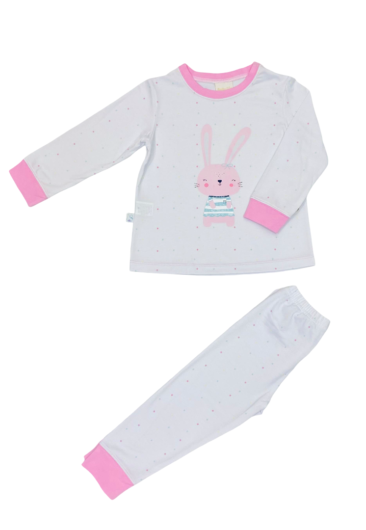 Pijama para bebé niña de la marca Sleeping Baby en tonalidades rosado y blanco. Confeccionado con 60% poliéster, 33% algodón y 7% elastano, esta composición textil proporciona durabilidad, suavidad y flexibilidad. El material resiste múltiples lavados manteniendo su forma y color, mientras que la mezcla de fibras naturales y sintéticas ofrece el equilibrio ideal entre comodidad y practicidad para el descanso de tu bebé.