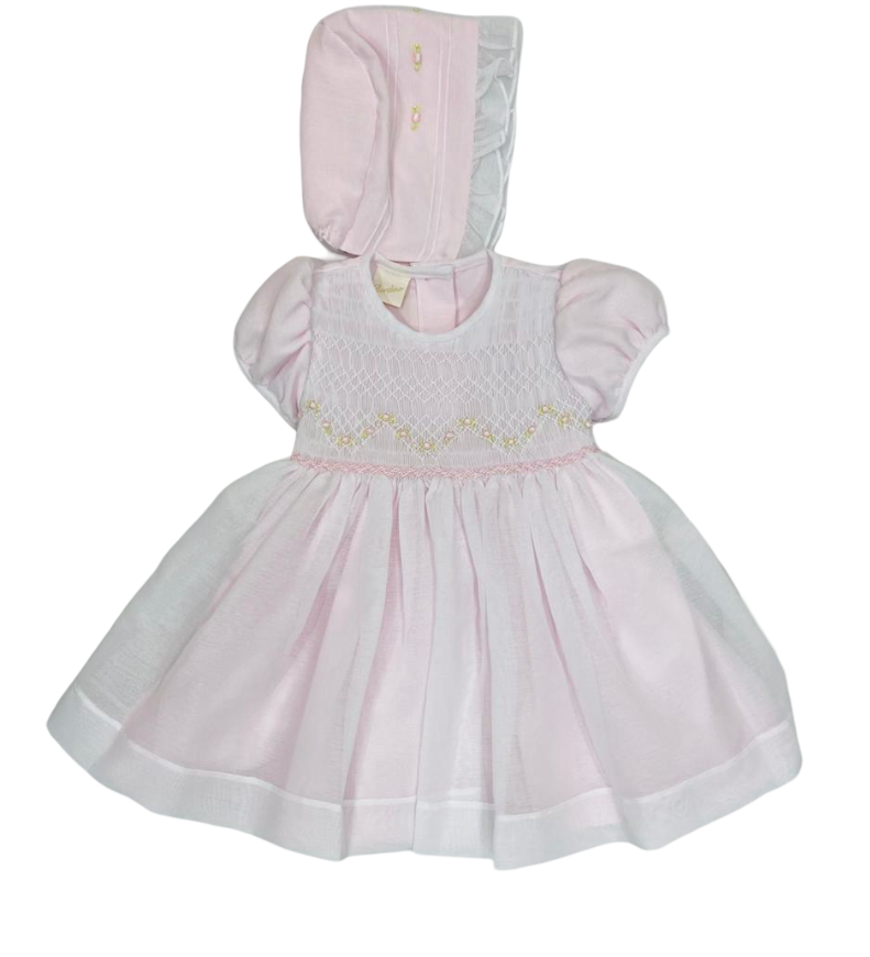 Vestido -Gorro Bebé Niña Rosado Bordino