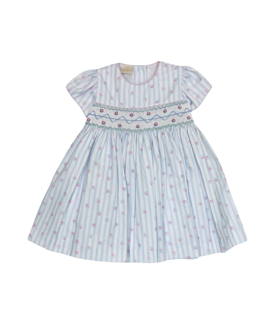 Elegante vestido infantil confeccionado en poliéster de alta calidad que combina tonos azul claro con detalles en rosado. Diseñado por Bordino, esta prenda ofrece comodidad y durabilidad para el uso diario de tu bebé niña. Su composición 100% poliéster facilita el cuidado y mantenimiento, garantizando que mantenga su forma y color tras múltiples lavados.