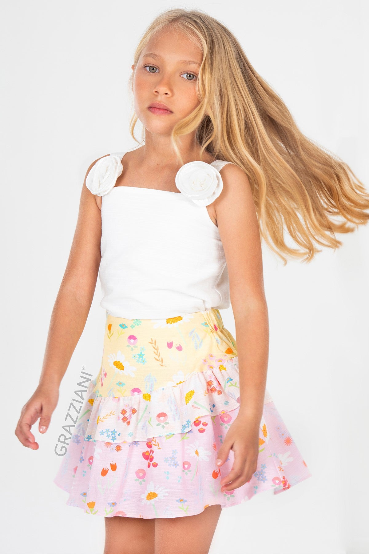 "Conjunto De Falda Niña, Marca: Grazziani, Color: Rosado/Blanco