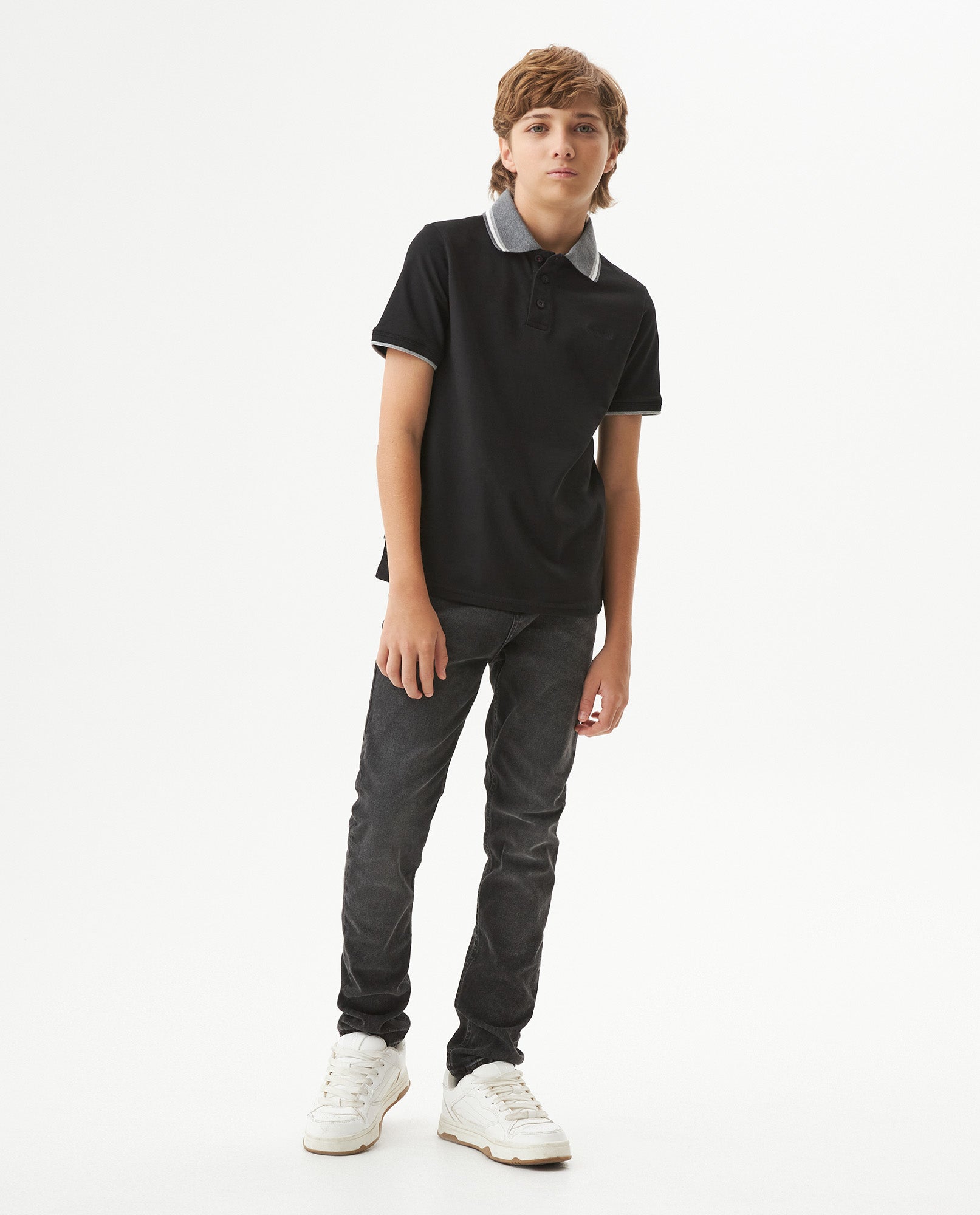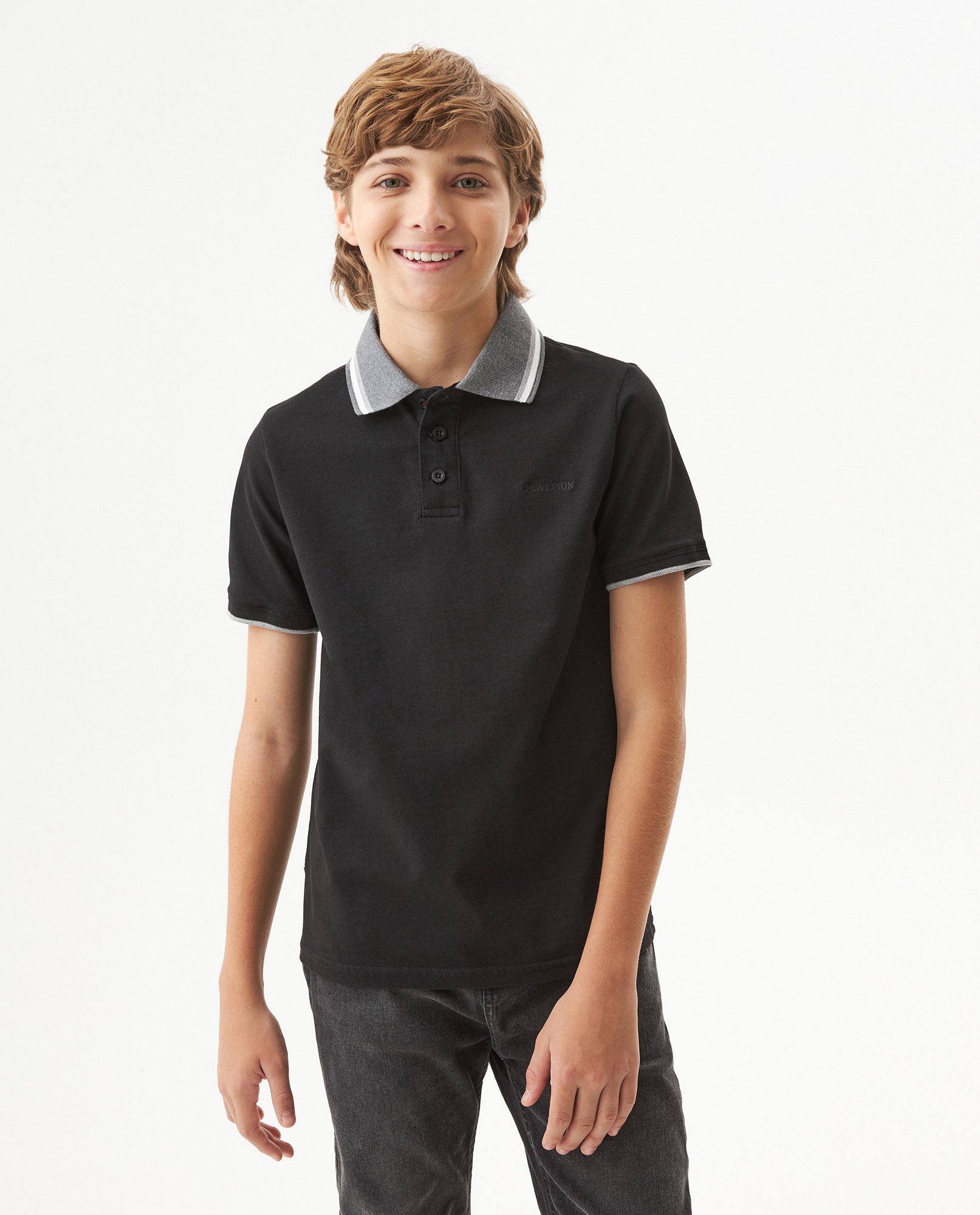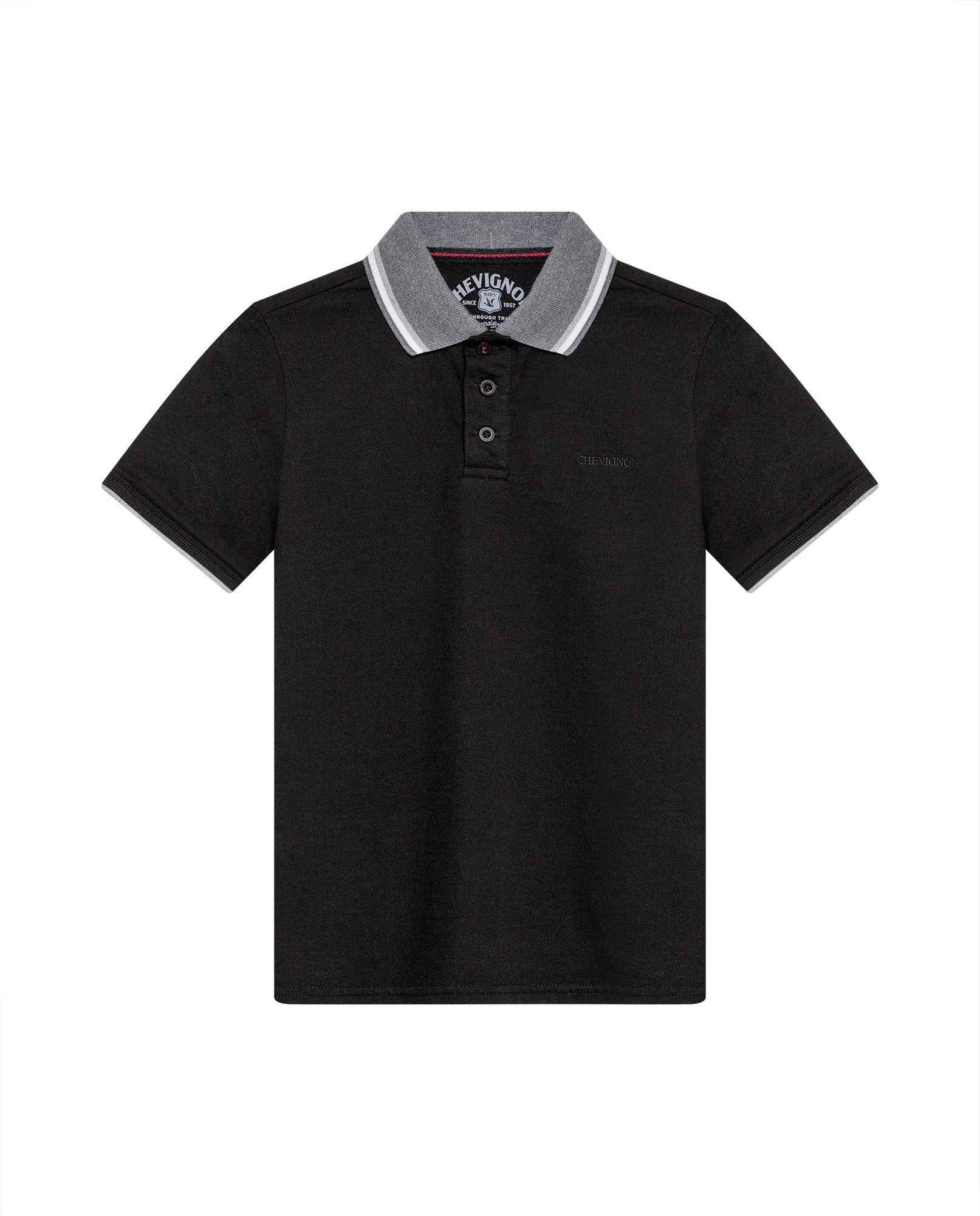 Polo para niño classic fit, ajuste regular, manga corta. Elaborada en mezcla de algodón con elastano que permite moverse libremente todo el día. Cuello y puños tejidos resistentes al uso diario, botón marcado al tono y bordado en pecho que añaden calidad premium. Etiqueta tejida en costado que marca autenticidad Chevignon.