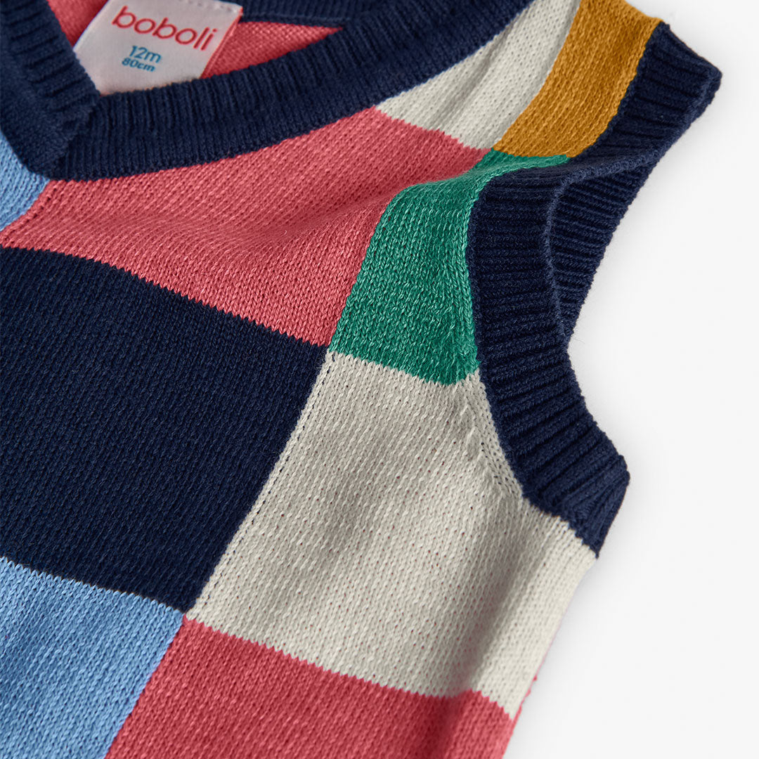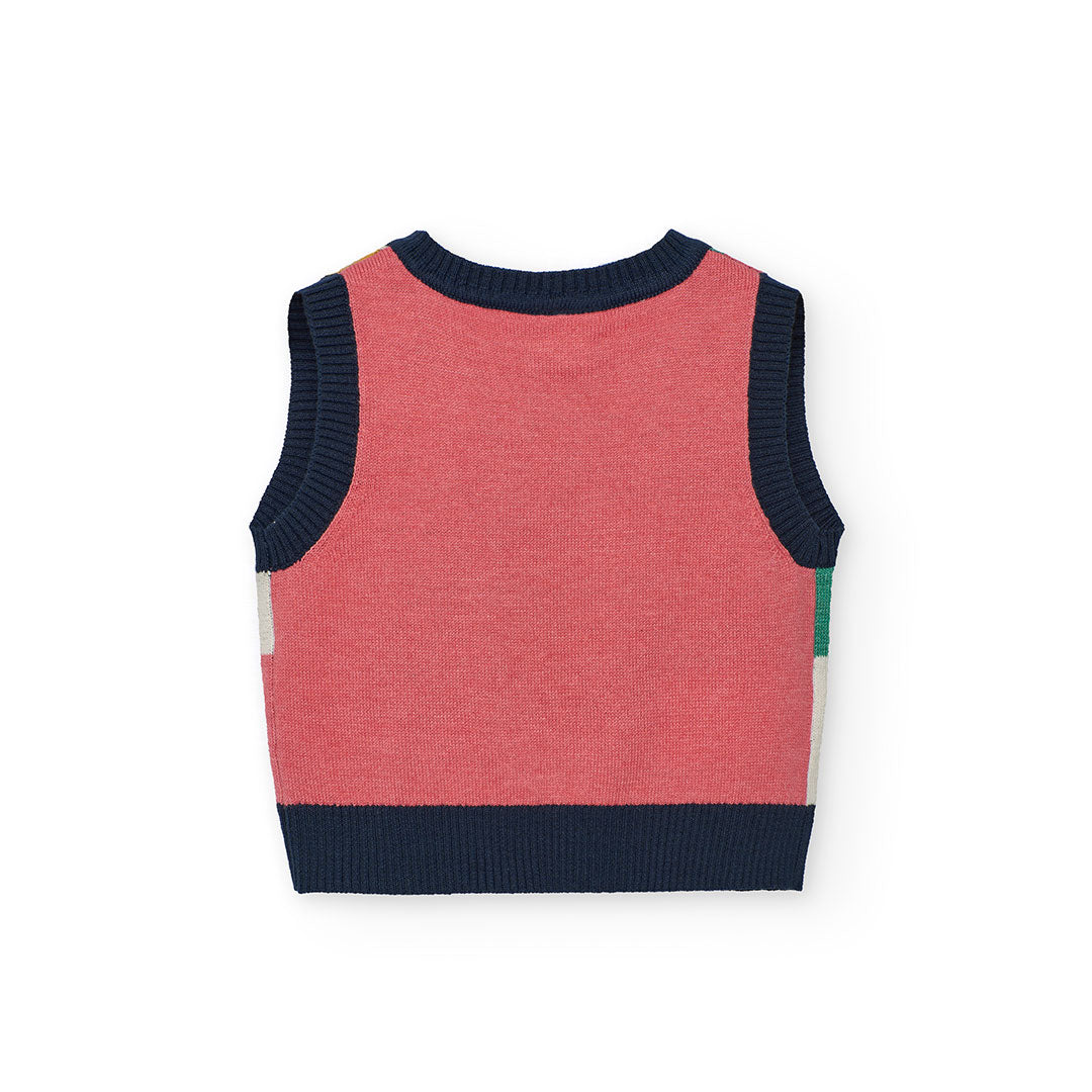 Chaleco para bebé niña de la marca Boboli en color blanco, confeccionado en Lana con un 55% algodón, 42% poliéster y 3% lana en su exterior.