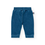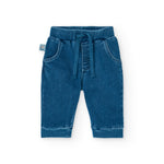 Conjunto para bebé niño de la marca Boboli en tonos amarillo y azul. Incluye un buzo fabricado 100% en algodón y un jean compuesto por 70% algodón y 30% poliéster, asegurando comodidad y durabilidad.