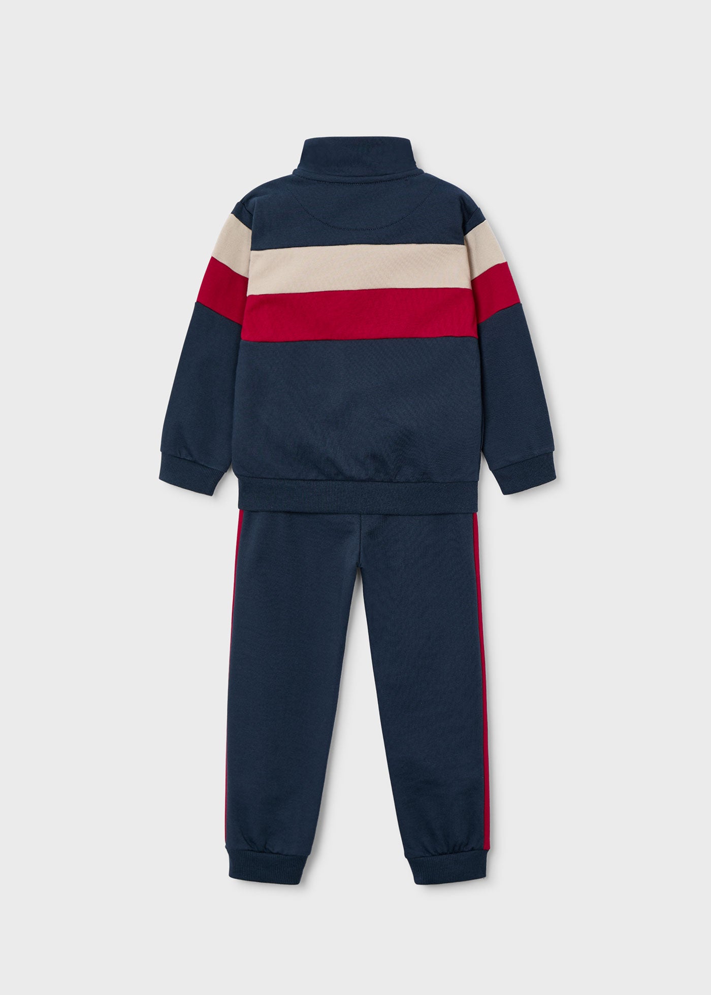 Conjunto para niño de la marca Mayoral en color Multicolor. La prenda exterior está confeccionada con 60% algodón, 39% poliéster y 1% elastano, garantizando comodidad y durabilidad. Incluye pantalón largo con la misma composición para un look completo y confortable.