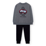 Conjunto para niño de la marca Boboli en color gris. La camiseta está confeccionada en jersey con un 60% algodón y 40% poliéster, mientras que el pantalón es 100% algodón, ofreciendo comodidad y durabilidad.