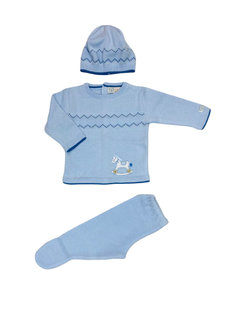 Conjunto estilo primera muda en tonalidad azul, confeccionado completamente en algodón puro al 100% por la marca Bebita. Proporciona suavidad incomparable y máximo confort para la delicada piel del recién nacido. La fibra natural garantiza resistencia superior ante lavados continuos, cualidades hipoalergénicas naturales y durabilidad extendida. Diseñado específicamente para los primeros meses de vida, asegura comodidad sostenida y facilita el mantenimiento cotidiano de la prenda.