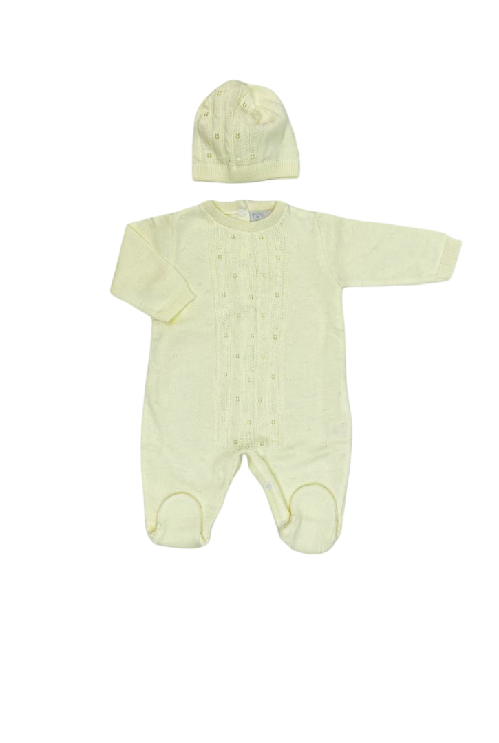 Conjunto de Esquimal y gorro unisex en  color amarillo de la reconocida marca Bebita. Confeccionado con hilo de algodón 100% en su exterior, garantiza comodidad y transpirabilidad para el bebé. Ideal para mantener al pequeño abrigado en días frescos mientras permite que su piel respire naturalmente. Diseño versátil que combina funcionalidad y estilo.