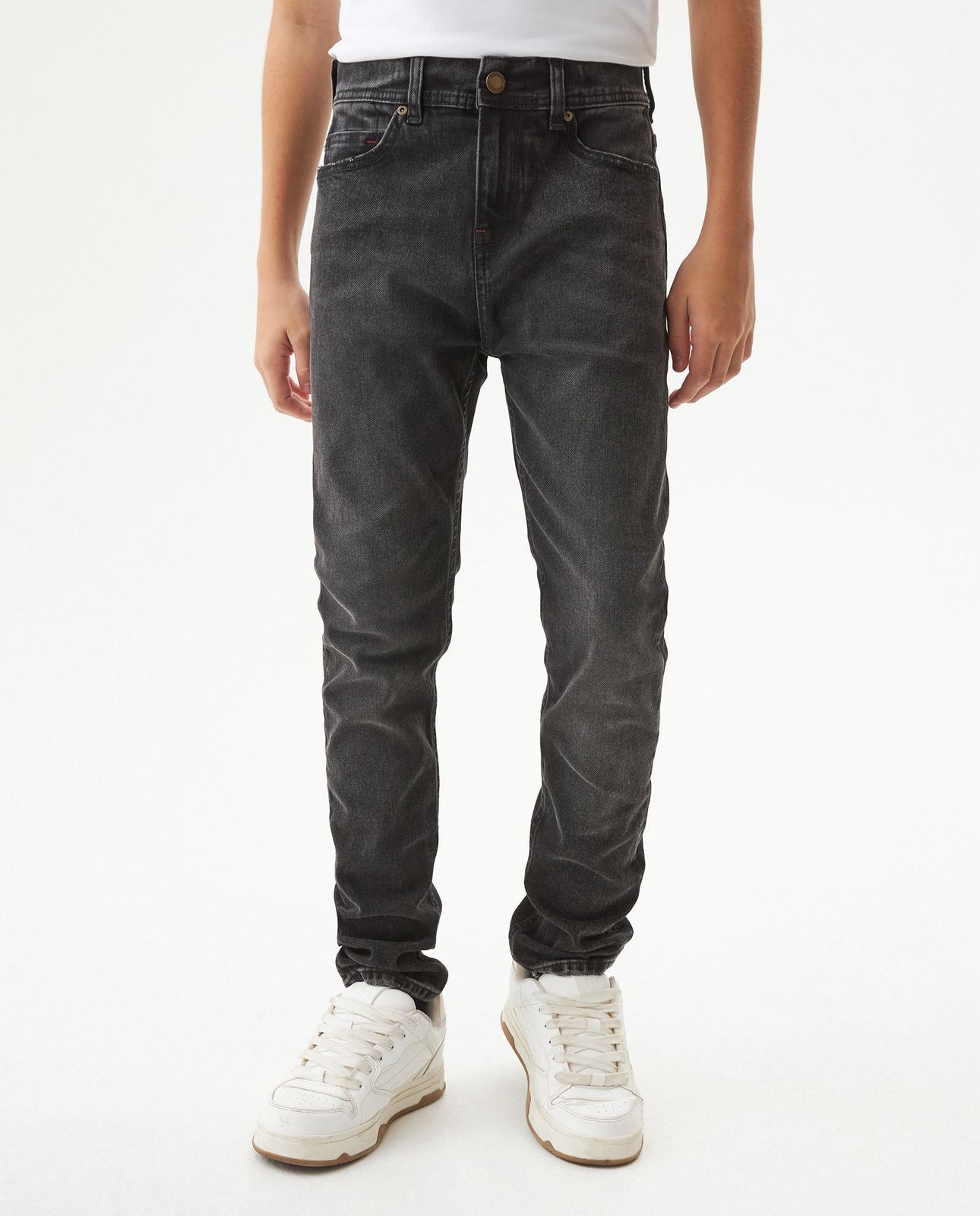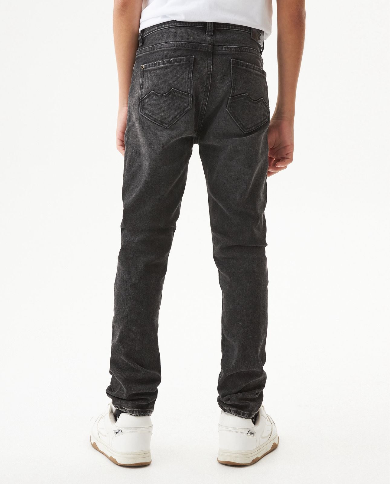 Jean 5 bolsillos para niño, ajuste relaxed. Cinco bolsillos clásicos con funcionalidad total para sus cosas. Etiqueta de cuero en cintura y ocho remaches metálicos que aportan calidad premium. Lavado claro con raspones en bolsillos frontales para efecto desgastado moderno. Resistente para uso diario con estilo urbano.