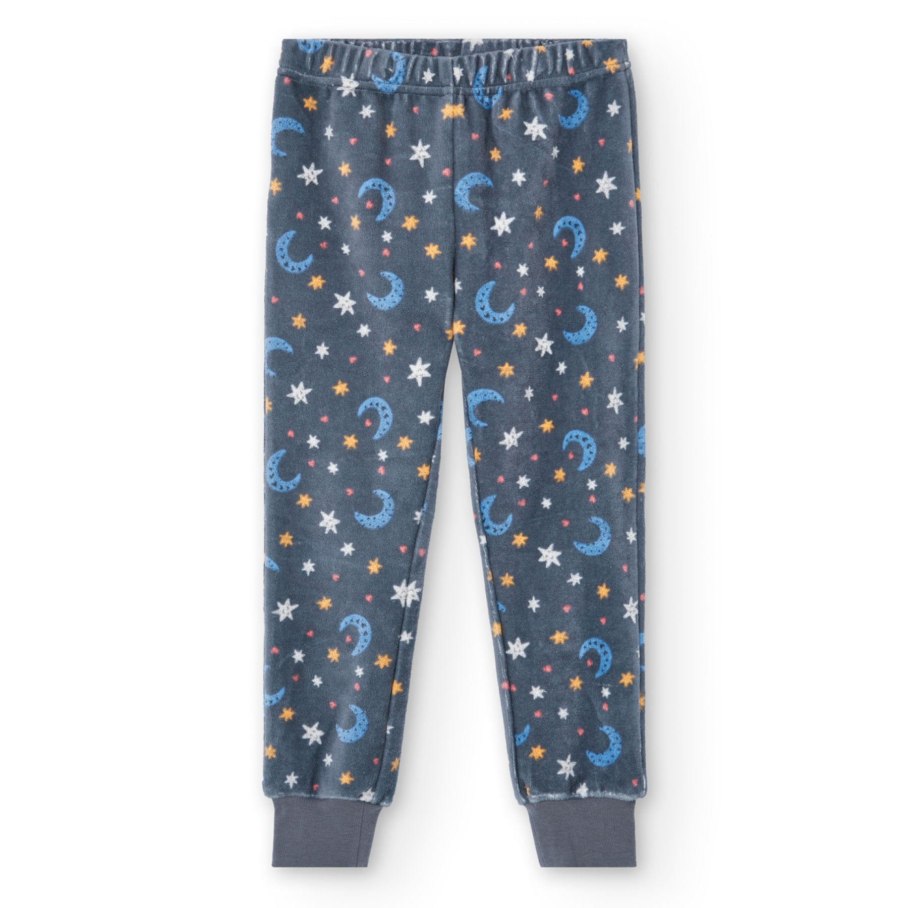 Pijama para niña de la marca Boboli en color gris. Confeccionado con un exterior compuesto por 75% algodón y 25% poliéster, que asegura comodidad y durabilidad.
