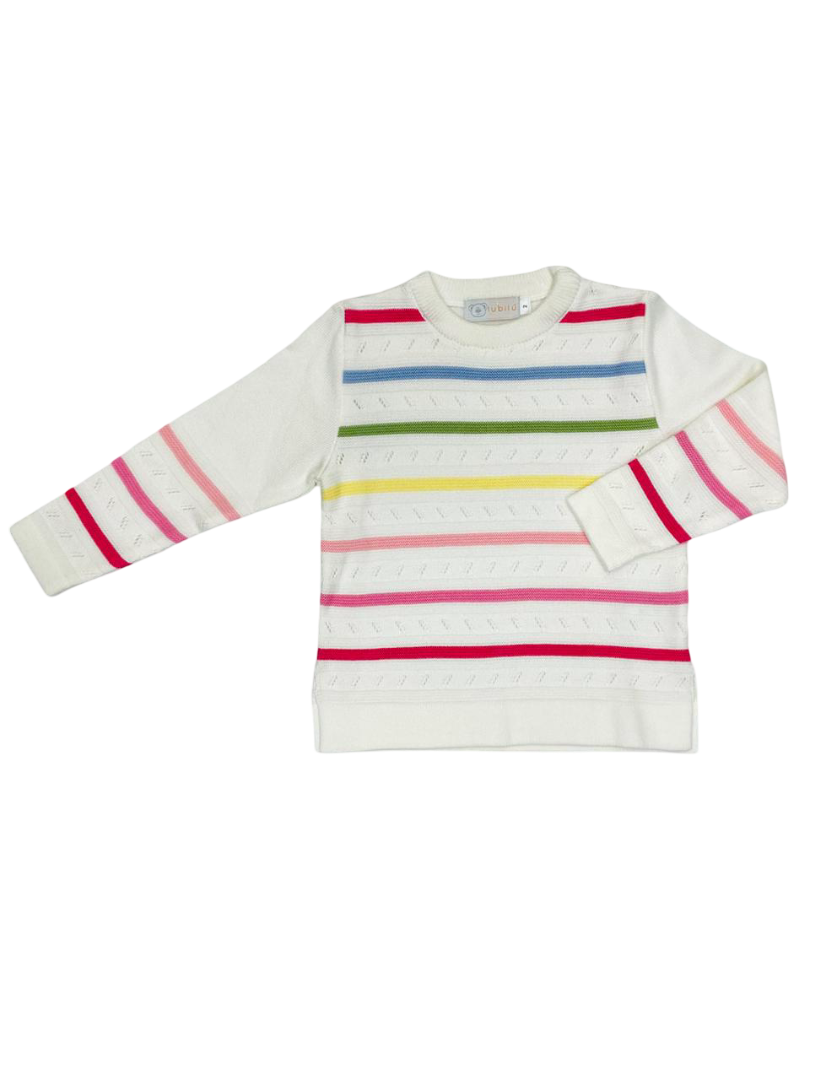 Saco para niña de Bebita confeccionado con una fórmula textil balanceada: 50% acrílico y 50% modal. Esta combinación de fibras proporciona calidez regulada y tacto suave contra la piel delicada. El diseño presenta un tono base beige complementado con detalles multicolores en el exterior, permitiendo múltiples opciones de coordinación.