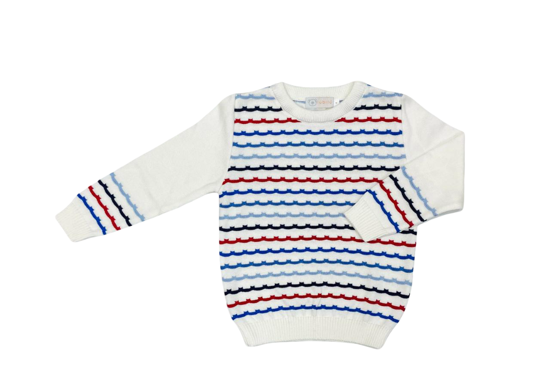 Saco para niño de la marca Bebita elaborado con una composición técnica de 50% acrílico y 50% modal, combinación que ofrece resistencia y confort superior. Su paleta cromática beige con acentos en tonos azules multicolor lo convierte en una prenda versátil que se adapta fácilmente a diferentes estilos. Diseñado para proporcionar calidez y transpirabilidad durante el uso cotidiano de los niños.