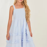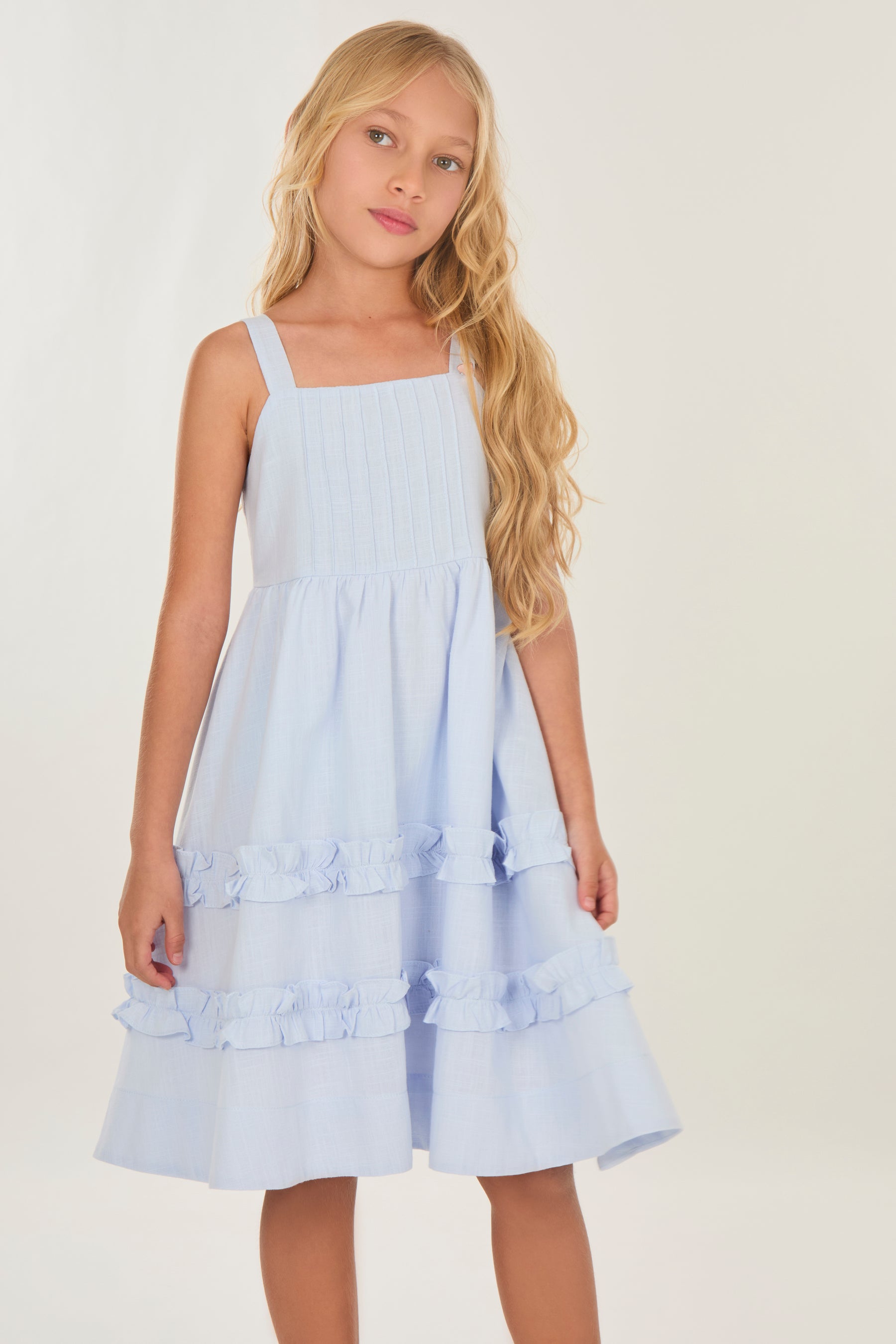 Hermoso vestido infantil de la reconocida marca Grazziani en un elegante tono azul. Confeccionado completamente en algodón de alta calidad, garantiza y comodidad perfecta para el día a día de tu niña. Una prenda versátil que combina estilo y practicidad, ideal para cualquier ocasión.