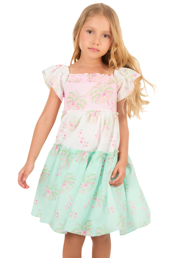 Hermoso vestido infantil de la reconocida marca Grazziani, confeccionado en 100% algodón de excelente calidad. Su diseño multicolor lo hace perfecto para cualquier ocasión, combinando comodidad y estilo. Ideal para que tu niña luzca radiante y fresca durante todo el día.